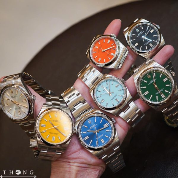 Lacquered purple, “wave” motif, rose gold applied ogival-shaped hour markers and numerals with white luminescent coating.